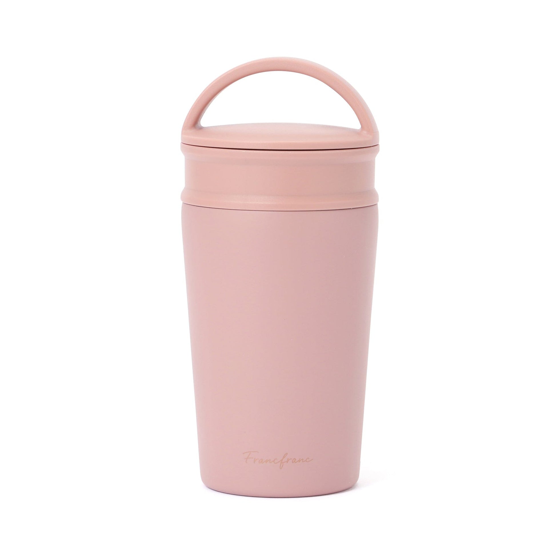 A stainless steel tumbler with a handle that is easy to carry.Double-layer vacuum structure with heat and cold retention effects to keep your drink fresh for a long time. It has a handle, so it's easy to carry even if your hands are occupied with a PC, and you can move it around at work or at home without stress.