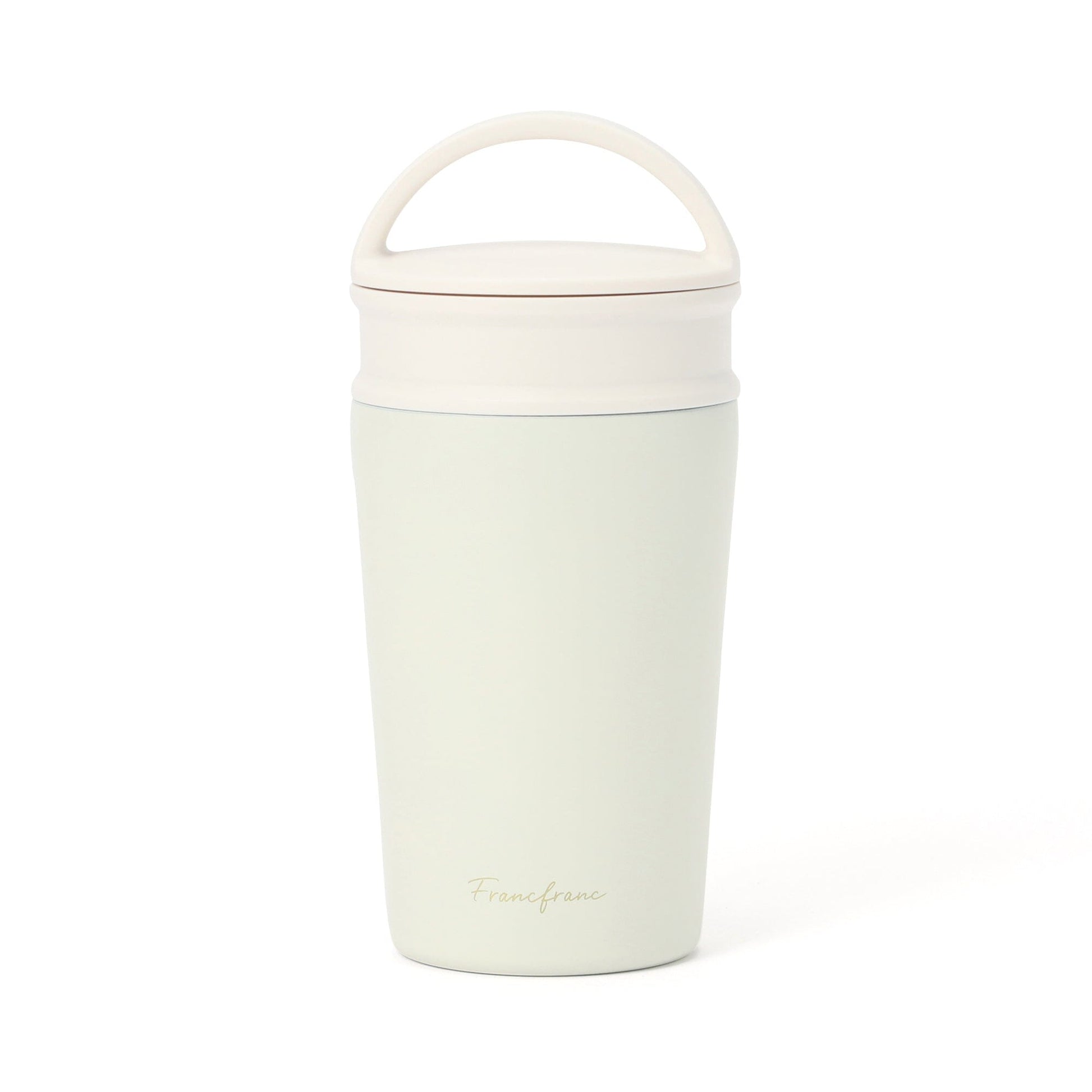 A stainless steel tumbler with a handle that is easy to carry.Double-layer vacuum structure with heat and cold retention effects to keep your drink fresh for a long time. It has a handle, so it's easy to carry even if your hands are occupied with a PC, and you can move it around at work or at home without stress.