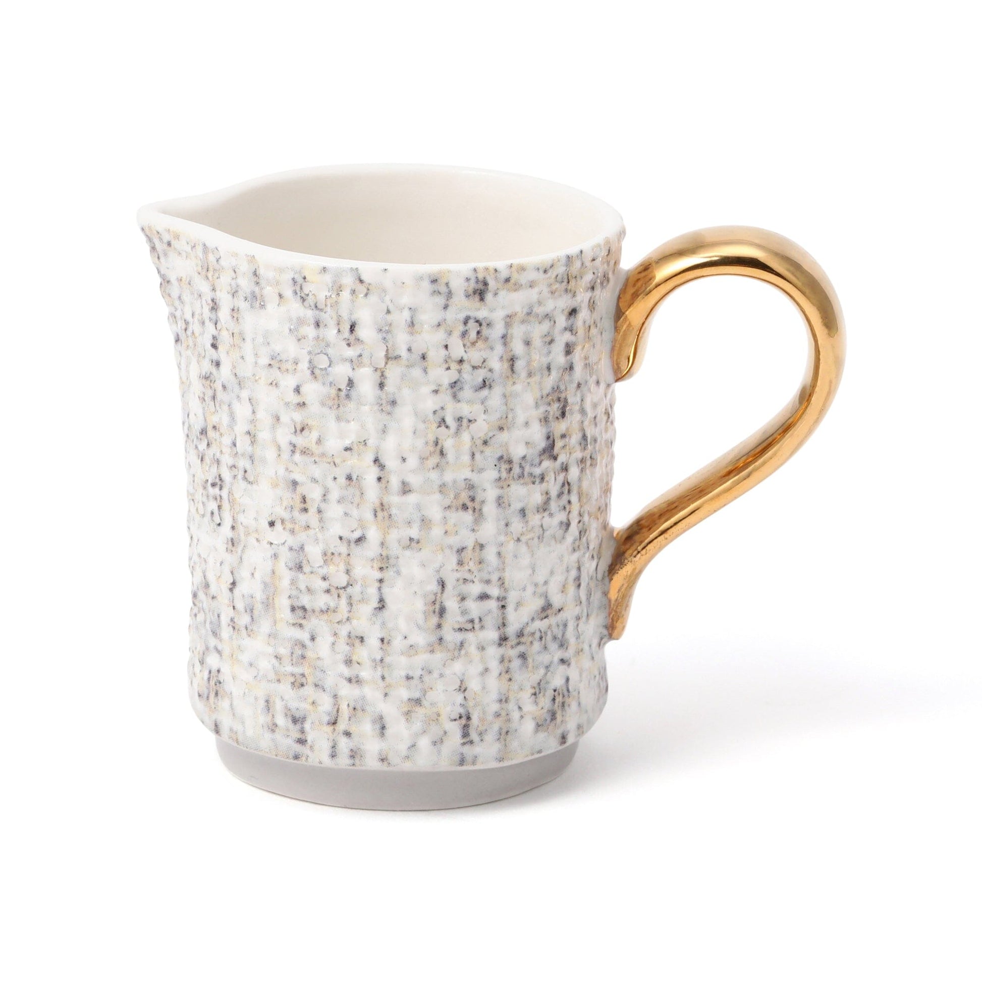This is a ceramic milk pitcher with a tweed pattern that will make you feel like you are spending time at your dream cafe while staying at home.The texture of the tweed fabric is expressed by the unevenness on the surface.