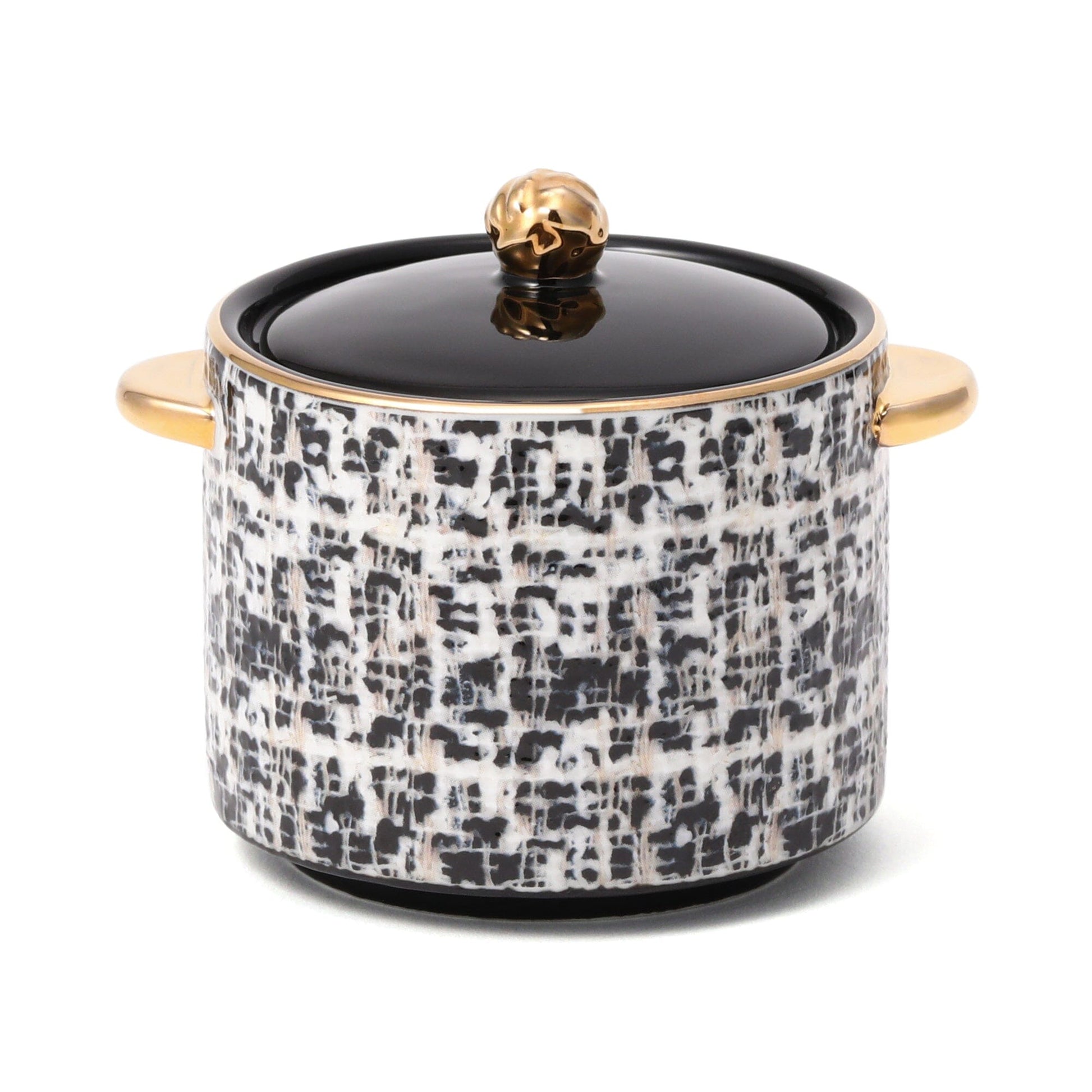 This is a ceramic sugar pot with a tweed pattern that will make you feel like you are spending time at your dream cafe while staying at home.The texture of the tweed fabric is expressed by the unevenness on the surface.