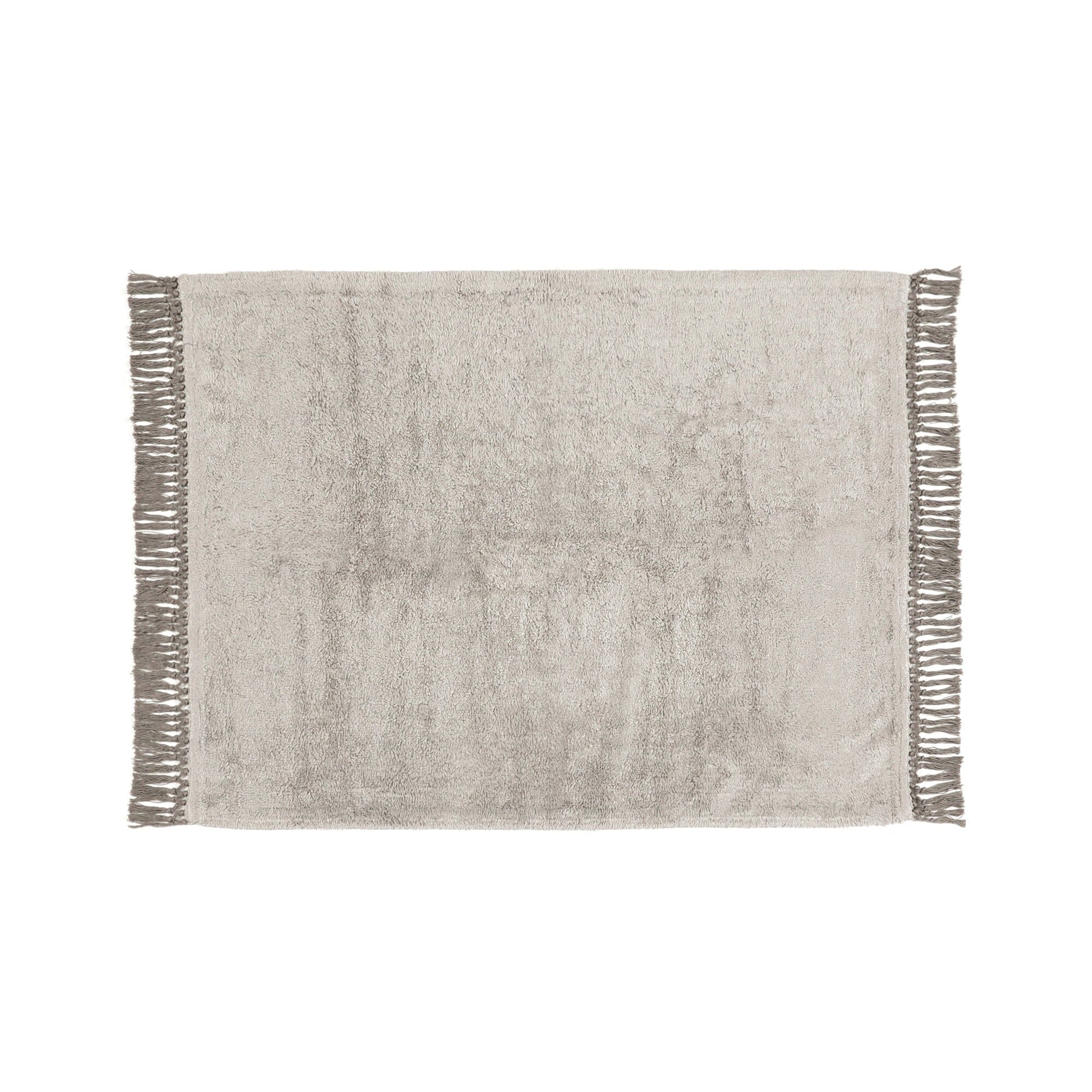 A rug with a glossy color and left and right fringes that gives it a luxurious feel.Made from viscose material with a lustrous and silky texture.