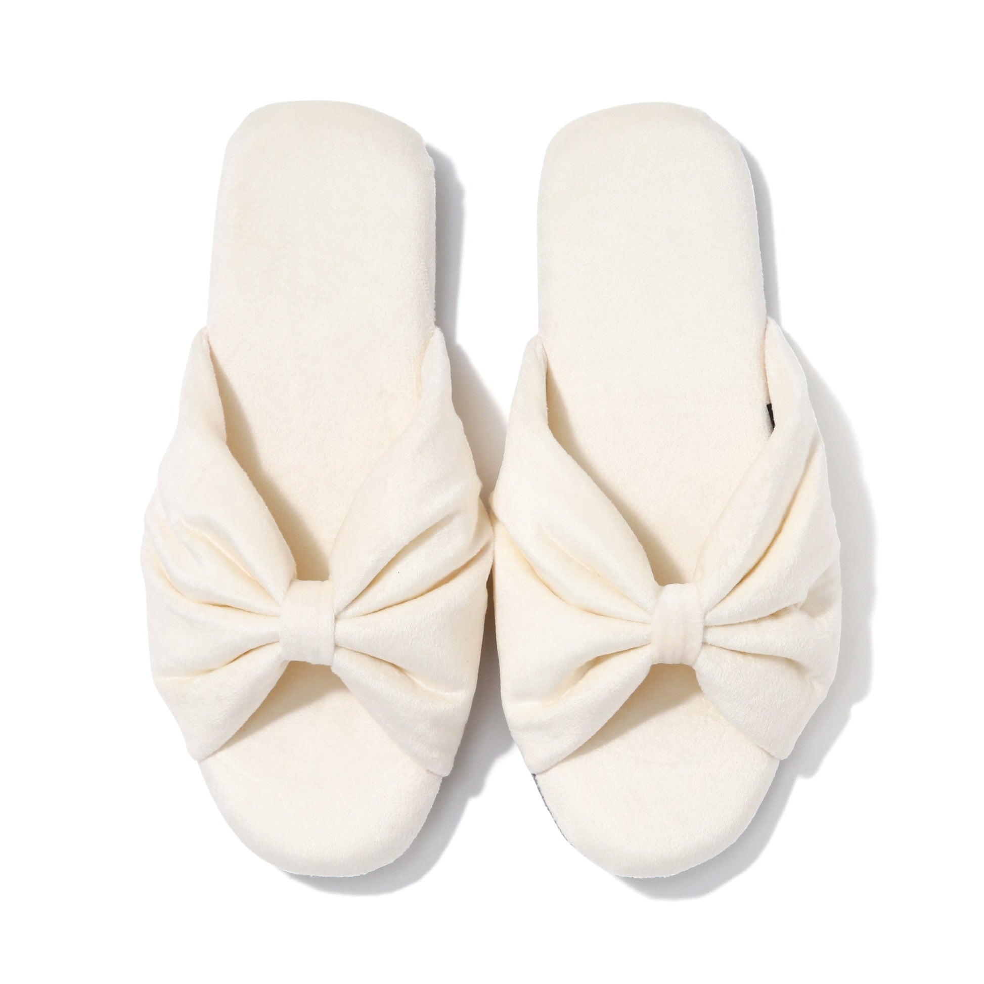 Room shoes with a cute design that looks like a large ribbon.The whole thing can be washed in a washing machine (40°C), so you can always use it cleanly.