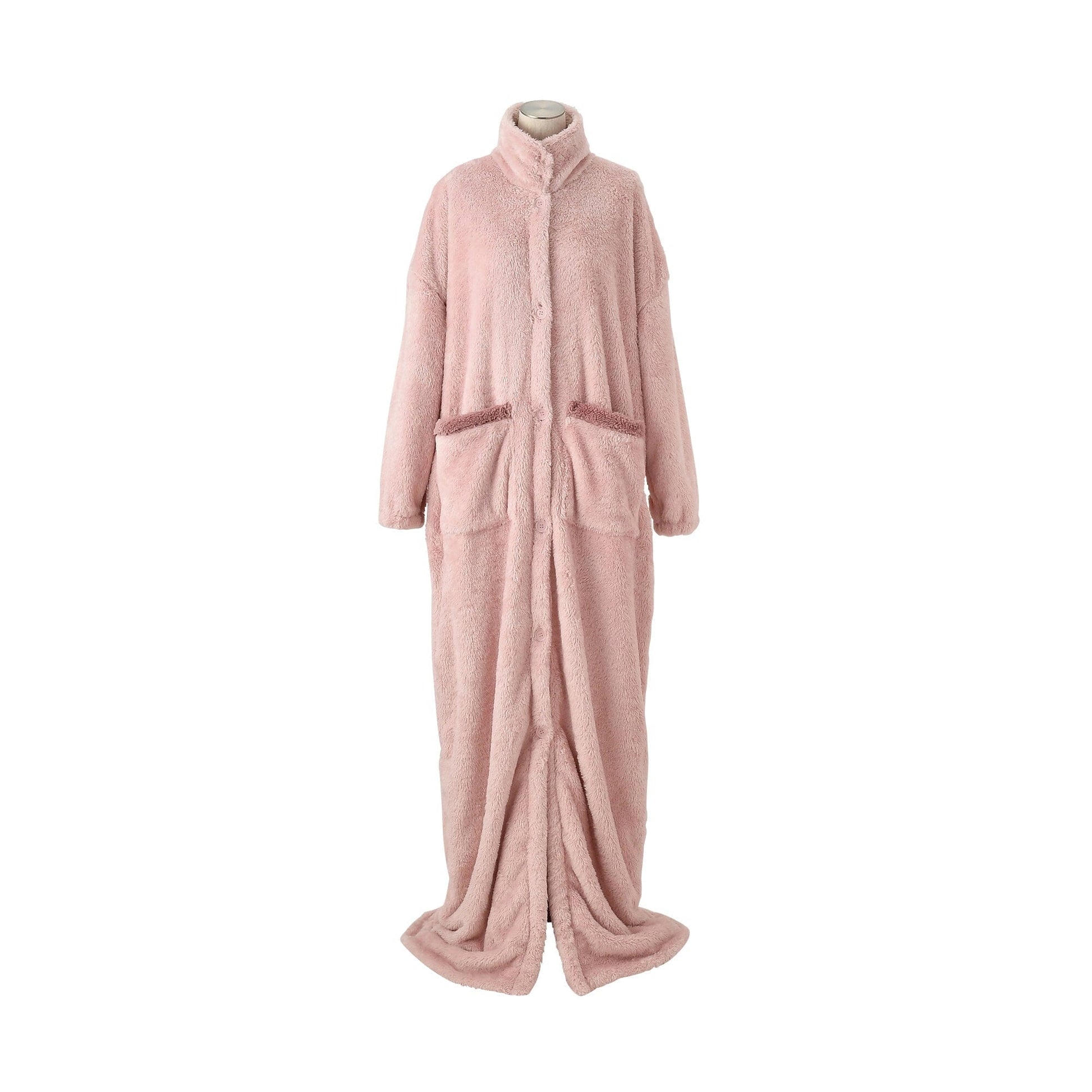 A long blanket robe made of fleece fabric that is comfortable to the touch.The length is 160cm and it has foot pockets, so it's warm even to the tips of your feet, which tend to get cold.