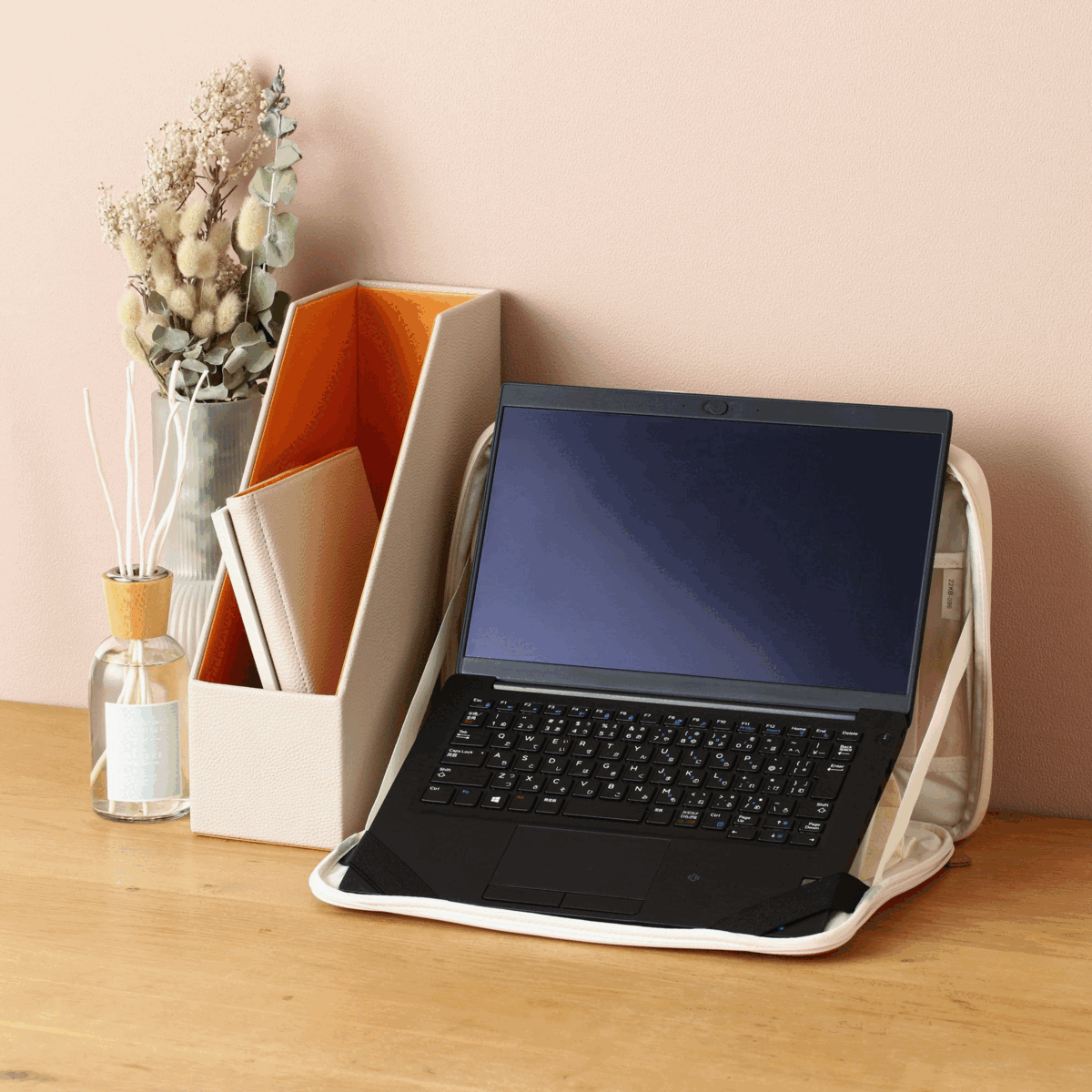 A convenient PC case for telework.It is compatible with 13-inch PCs and has a PC stand on the inside, so you can use it by leaning your laptop diagonally.
