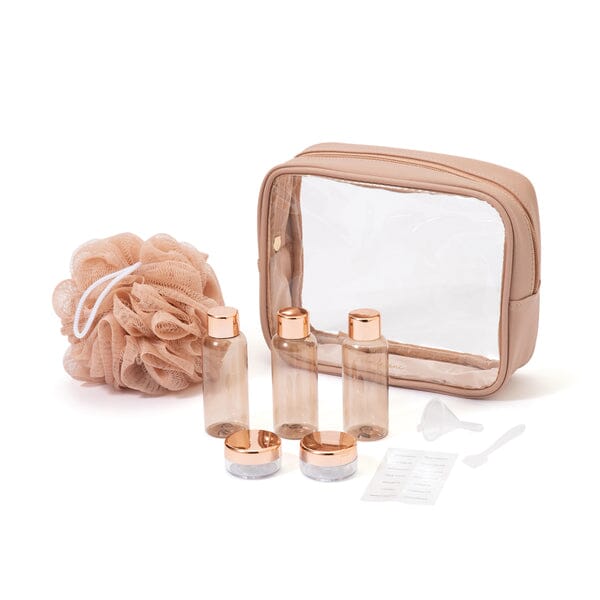 A pouch set with a refillable bottle that is convenient for the gym, traveling, etc. The set includes 3 bottles for liquids, 2 cases for cream etc., and 1 body sponge, so you can use them according to your needs. The cute coloring makes you feel excited just by holding it. Comes with accessories and stickers to make refilling easier.Specifications