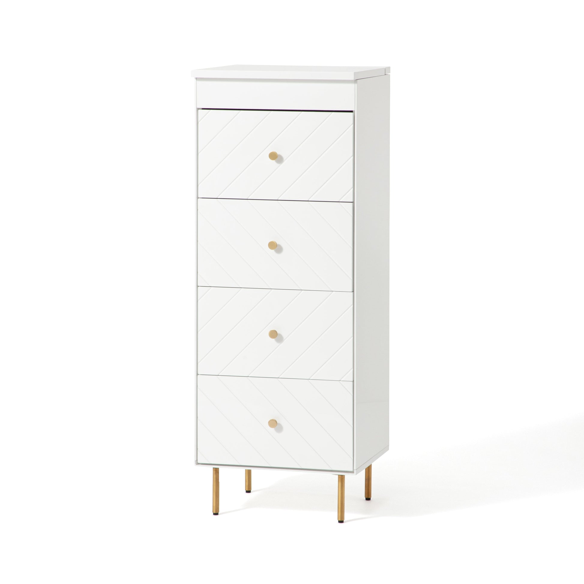 This is a luxurious high dresser with a distinctive front design and gold legs.