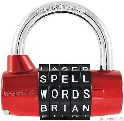 WordLock 5-dial padlocks provide maximum security against theft with a 2 5/8 inch hardened steel shackle and body. With 100,000 different letter combinations, you can pick words that are easy for you to remember but next to impossible for anyone to guess. Ideal for lockers, sheds and gates. This lock is weatherproof, It can stand up to the toughest environments. That��s extra strong, extra secure, and extra simplified. Color: Red. Size: 2.5"